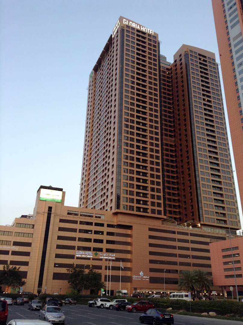 Seitliche Ansicht Gloria HotelLinks sind die Zimmer zur Meerseite ausgerichtet. Rechts die zur Sheikh Zayed Road.