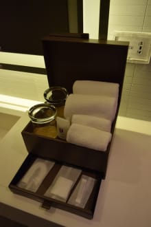 Handtücher und Vanity-Kit im Zimmer