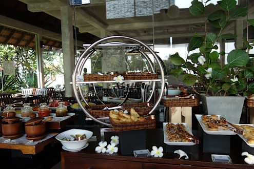 Frühstücksbüffet mit vielen Köstlichkeiten ....