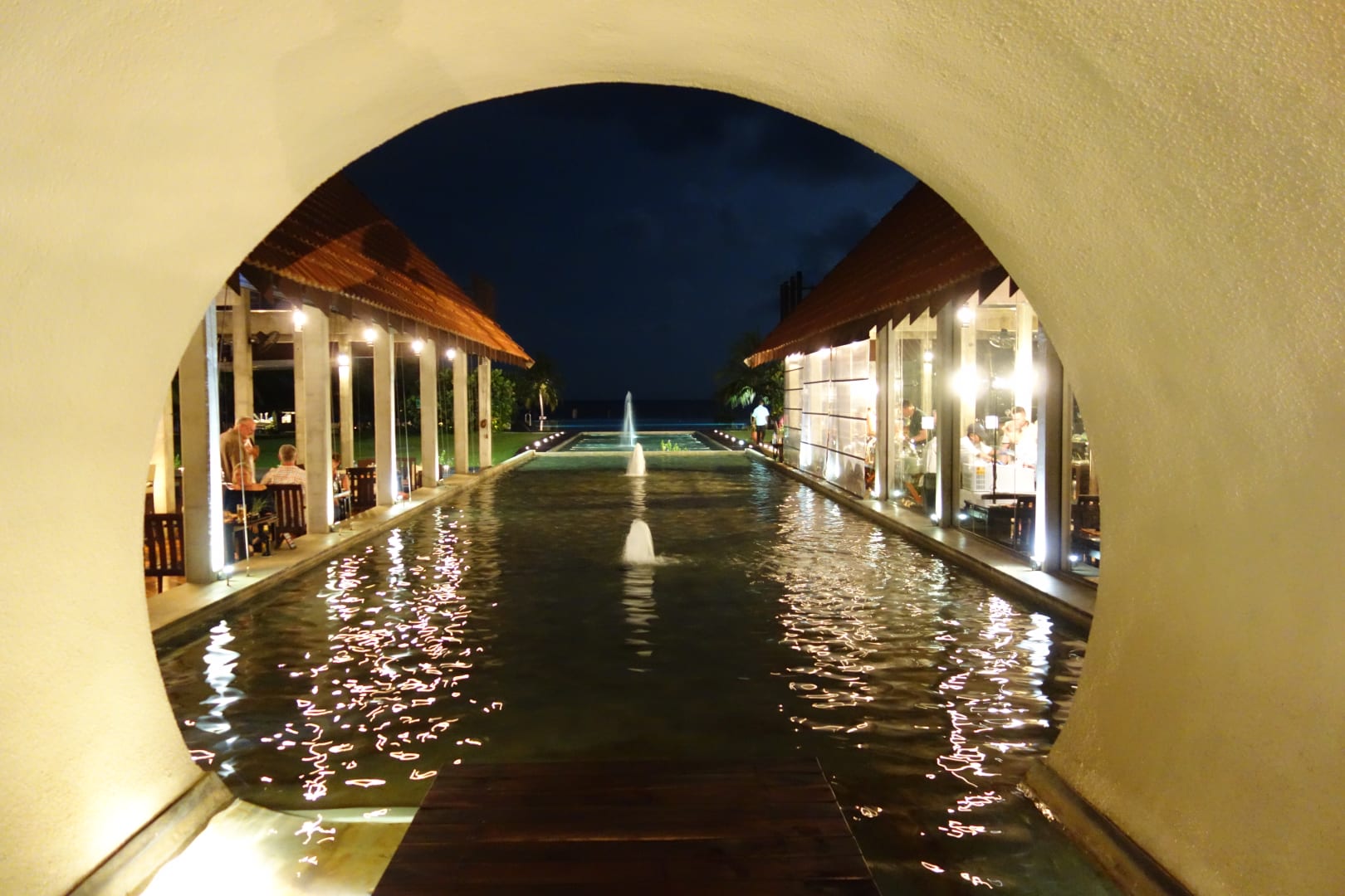 Blick durch den Rundtunnel zum Pool und Meer .....