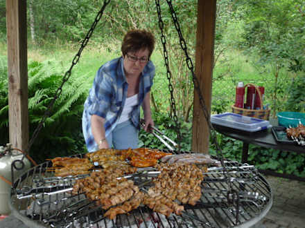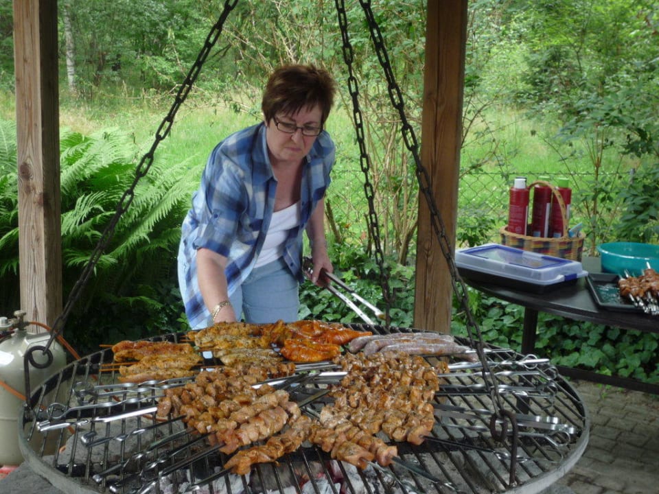 Grillplatz Ulla's GästehausUlla in Aktion bei einer ihrer bekannten und gut organisierten Grillparties.