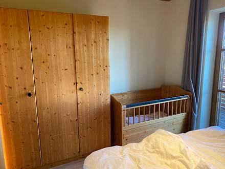 Elternzimmer mit Schrank und Babybett