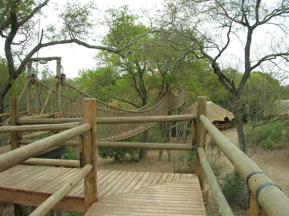 Zugang teilweise nur über diese Brücke zu den einzelnen Bungalows möglich (aufgrund der Tiere, die sich überall frei bewegen können)