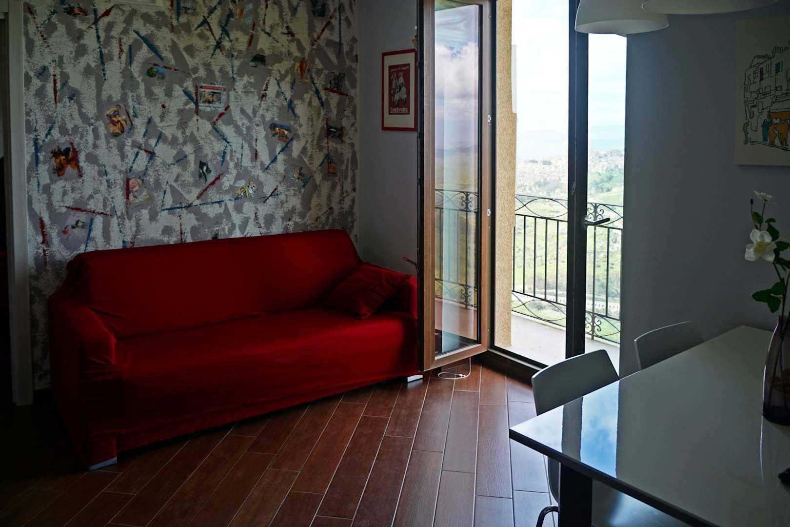 Pokój dziennyPokój dzienny z balkonem k którego roztaczają się przepiękne widoki na okilić i na Etnę