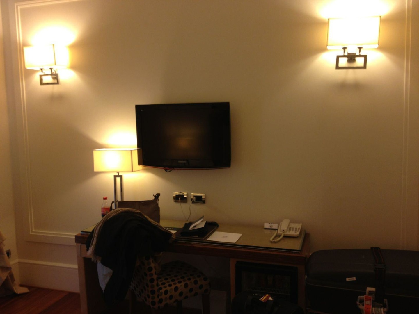 Schreibtisch mit TV (leider nur ein deutsches Programm ZDF)
