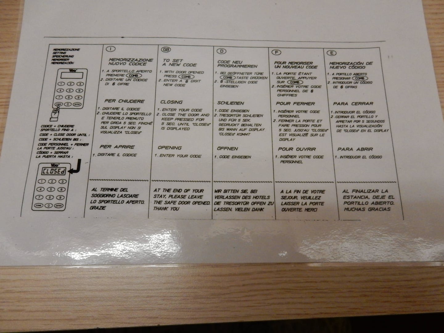 Safe Anleitung im Zimmer 512