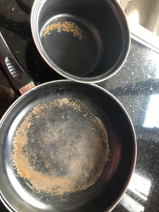 Die Pfannen in der Küche des Zimmers...