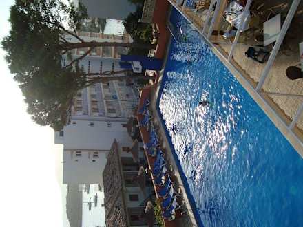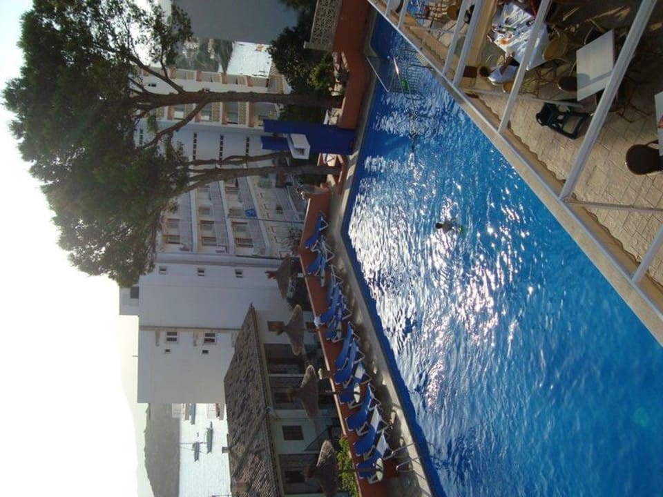 hinten rechts der abgetrennte Kleinkindpoolbereich, davor die Bar-Terasse