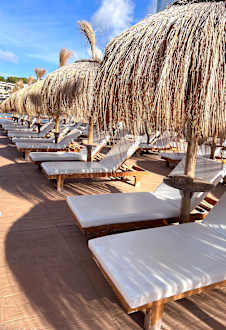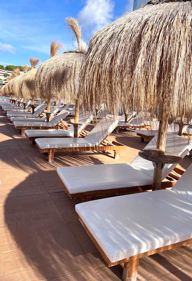 Beachclub,Liege 20€ pro Tag und pro Person.Direkt am Meer und Hotel. Gehört zum Hotel