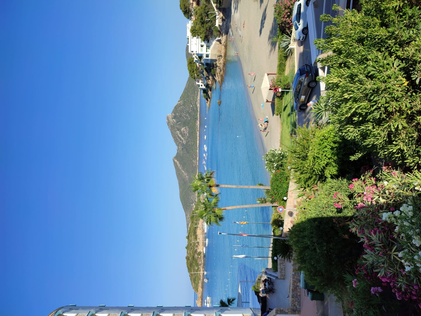 Blick vom Balkon auf einen der beiden Strandabschnitte