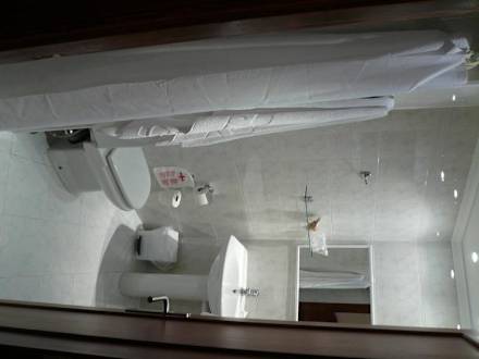 sehr klein, mit Fenster und Dusche