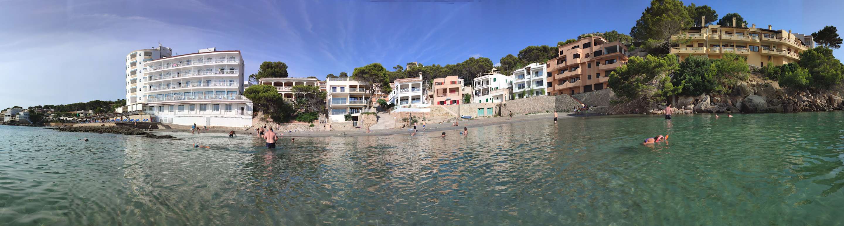 Blick aus dem Wasser in Richtung Hotel und die kleine Strand-Bucht
