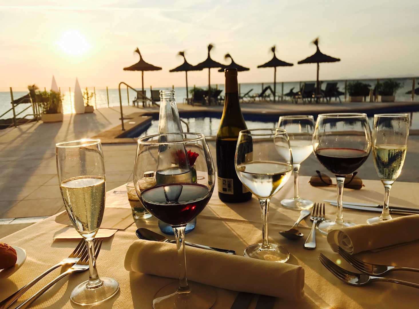 Jeden Abend haben wir diesen Ausblick beim Abendessen im Hotel genossen! Die Sonne versinkt jeden Abend beim Essen genau vor unseren Augen ins Meer...