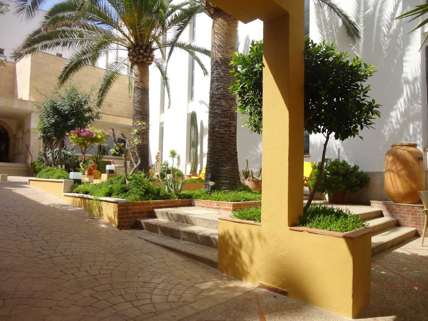 Eingang zum Hotel. Toll bepflanzt und mit Sitzecken