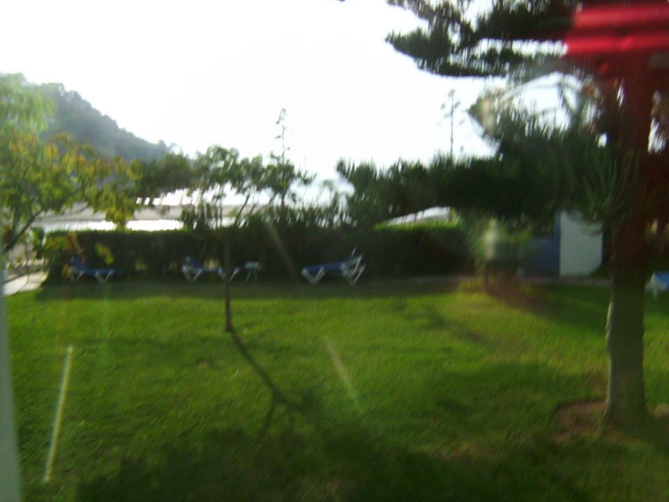 Blick auf Liegewiese und im Hintergrund das Meer