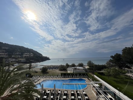 Blick auf den Pool und die Bucht