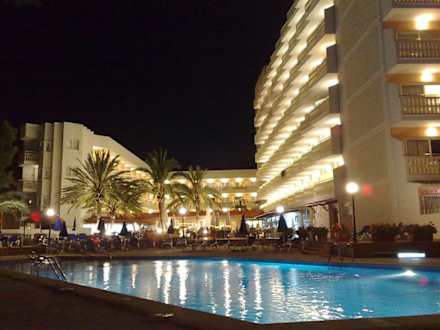 Aussicht auf das Hotel (abends)
