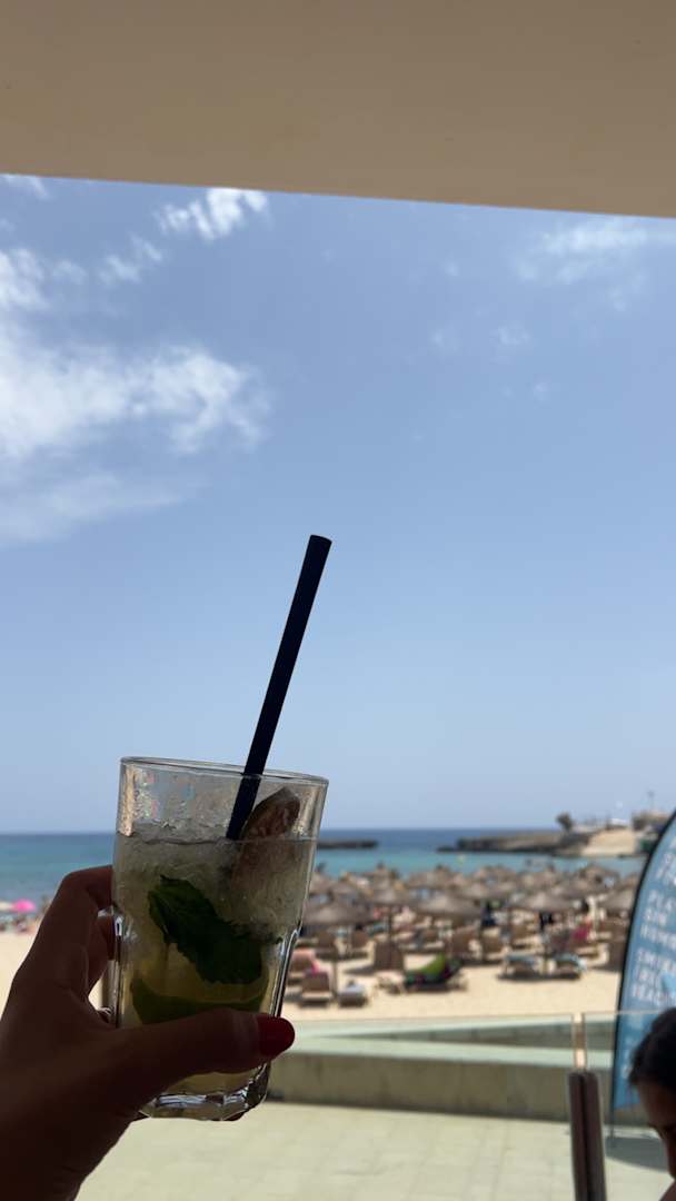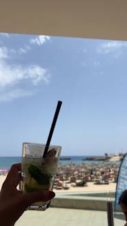 Unten im Hotel fast direkt am Strand gibt es auch ein Café wo man immer schnell was trinken kann