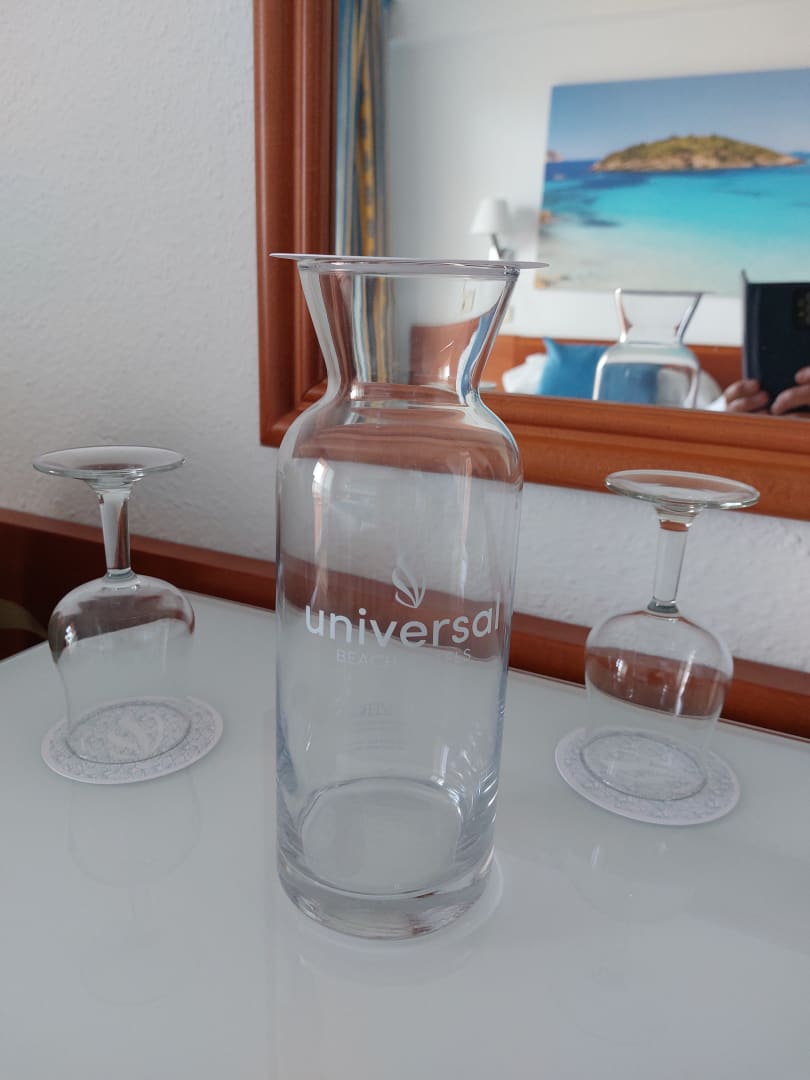 Glaskaraffe für den Wasserspender an der Rezeption