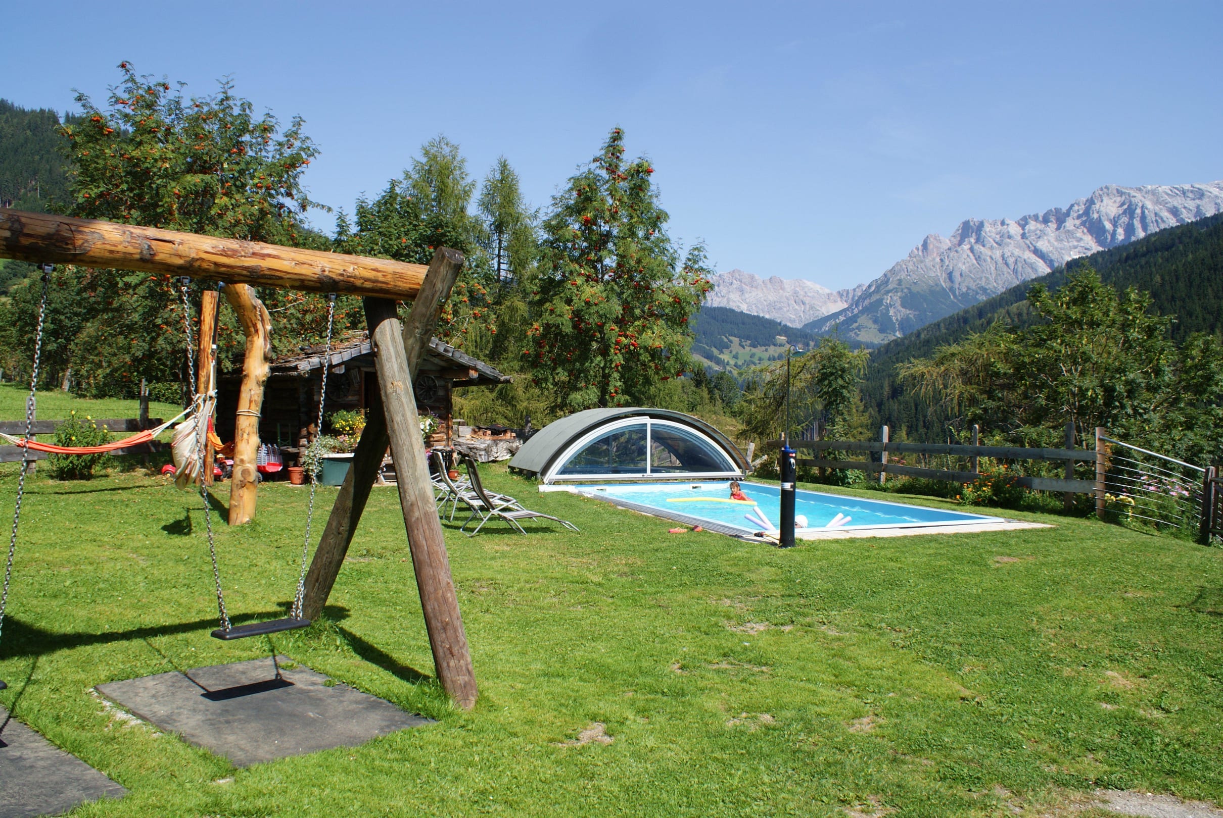 Ausblick vom Pool zum Hochkönig Unterdacheben /Apartments/Bauernhof