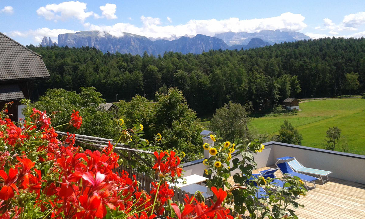 feine Terrasse mit herrlichem Ausblick zu den Dolomiten