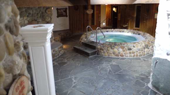 Ganz hinten (links und rechts) die Saunen mit Whirpool