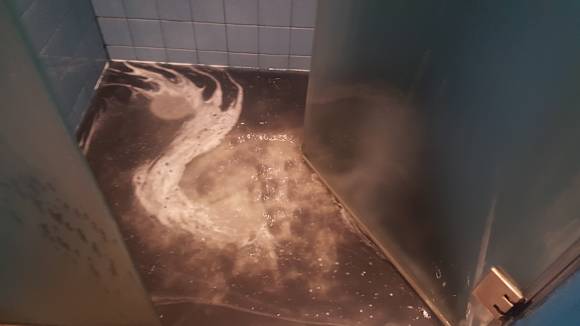 Das Bad mit verstopftem Abfluss