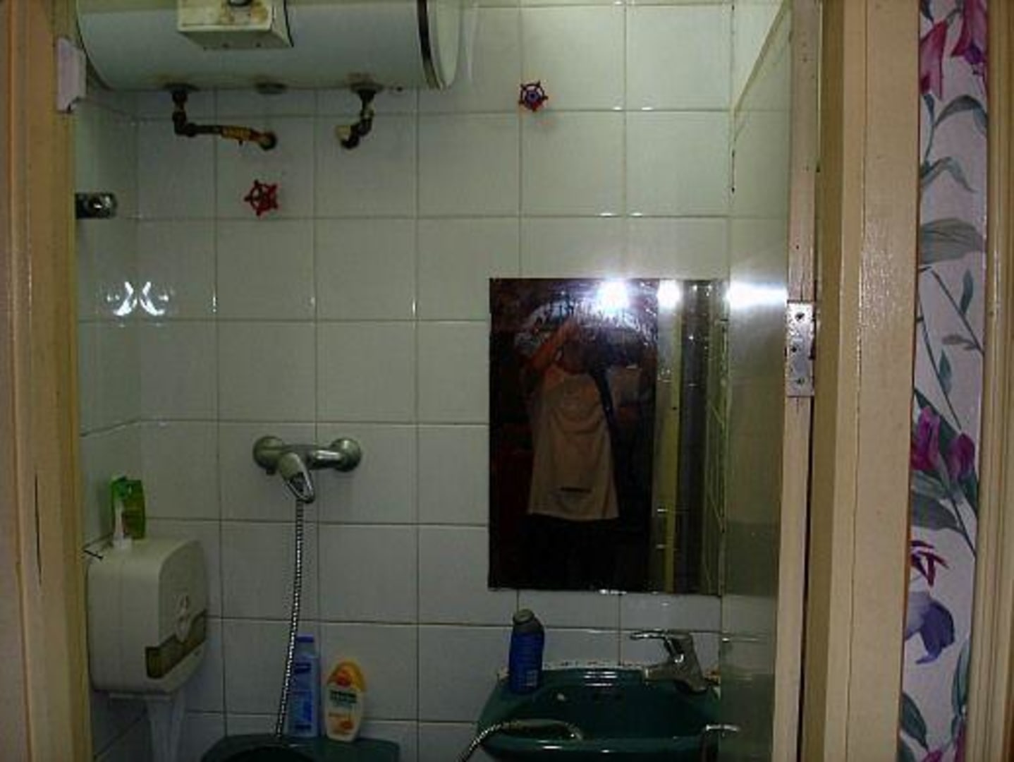 Im Boden des 2qm Bades gibt es einen Abfluss fürs Duschwasser.