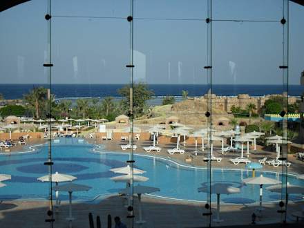 Blick von der Lobby zum Strand