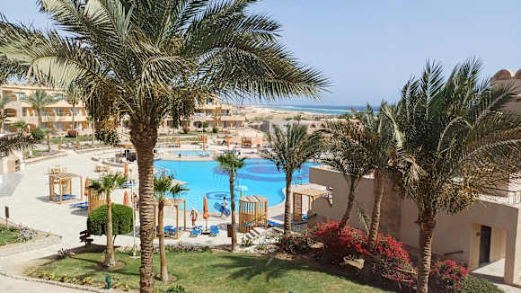Blick vom Balkon auf den Pool