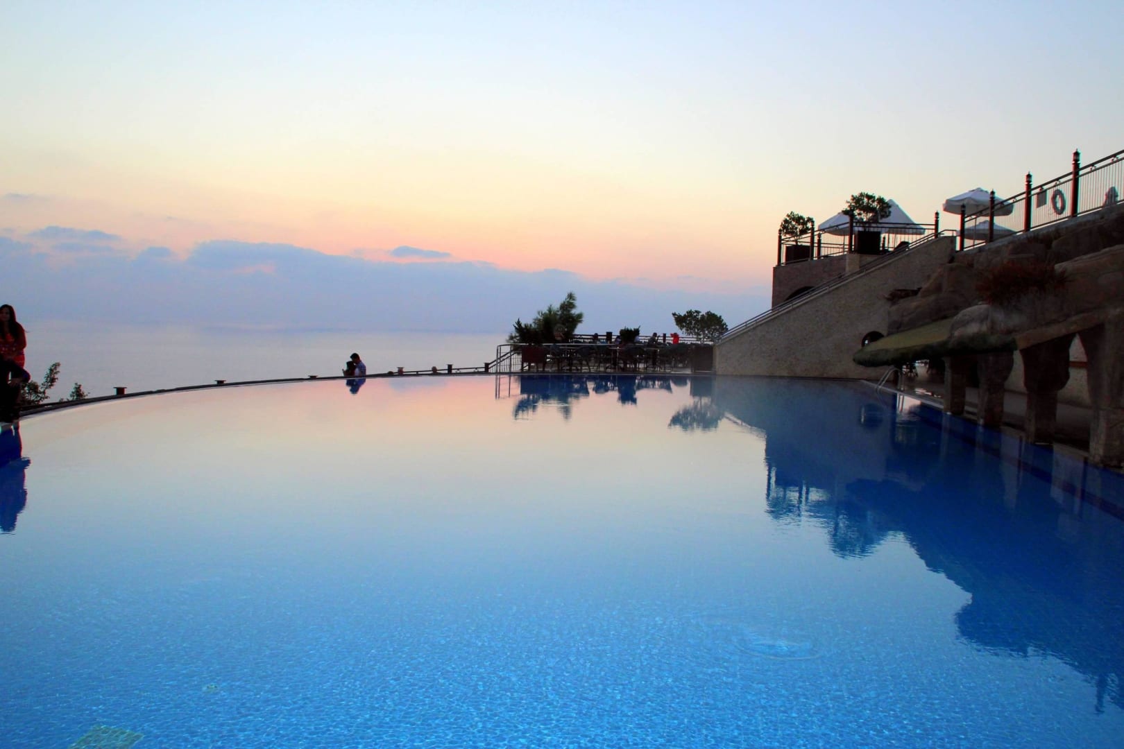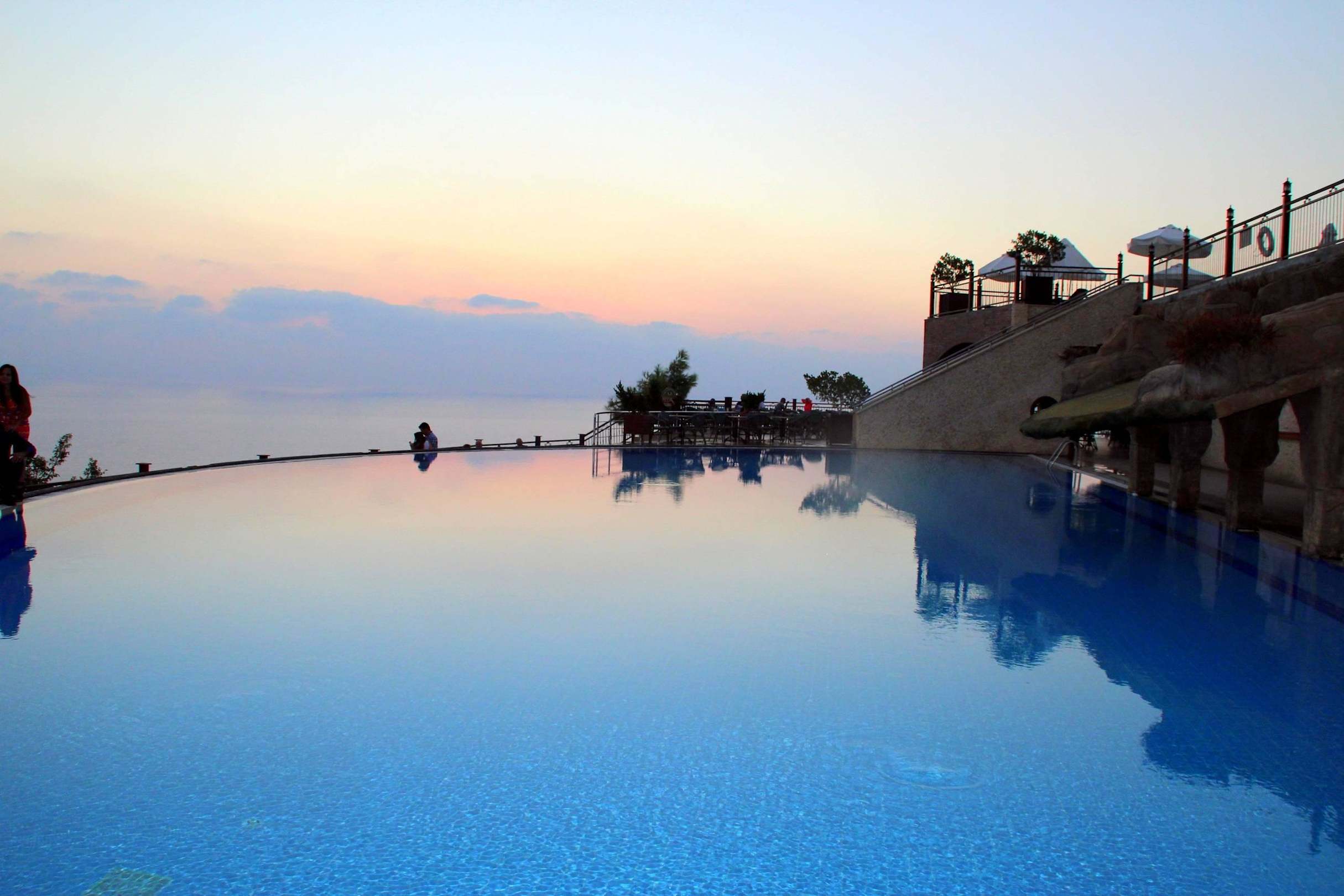 Pool mit Meerblick am Abend