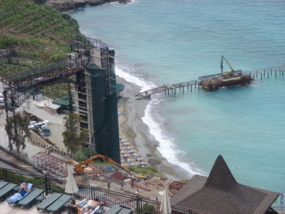 Hier wird derzeit intensiv an einer Art Lift vom Strand mit Verbindungsbrücke zum Hotel gebaut. Die Bauarbeiten sind allerdings noch nicht abgeschlossen. Es gibt einen Ersatzstrand unweit der Baustelle.