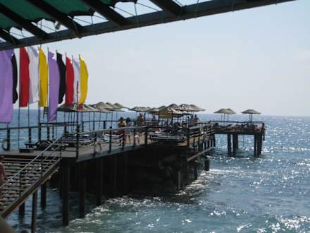 Mole mit Liegeplätzen , die ca. 200 m ins Meer rausreicht ! Bessere Liegeplätze als am Strand , vor allen Dingen wesentlich ruhiger !