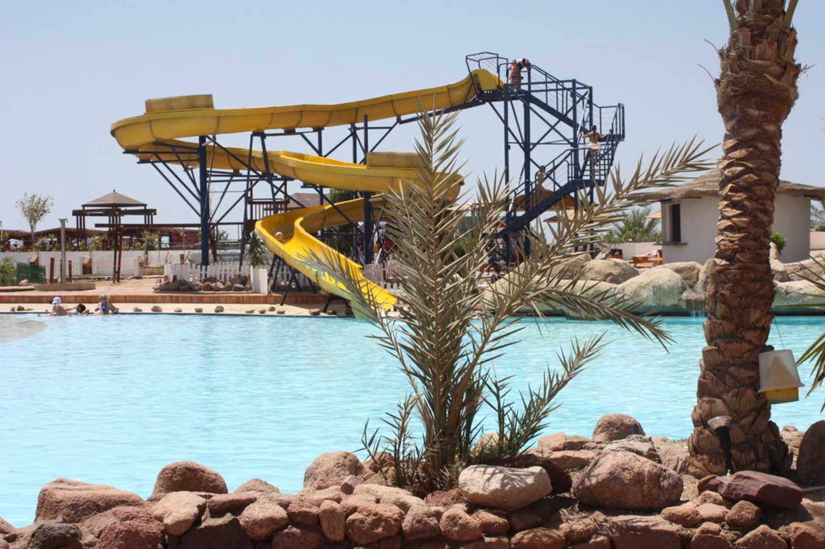 Hauptpool mit Blick auf die Rutsche