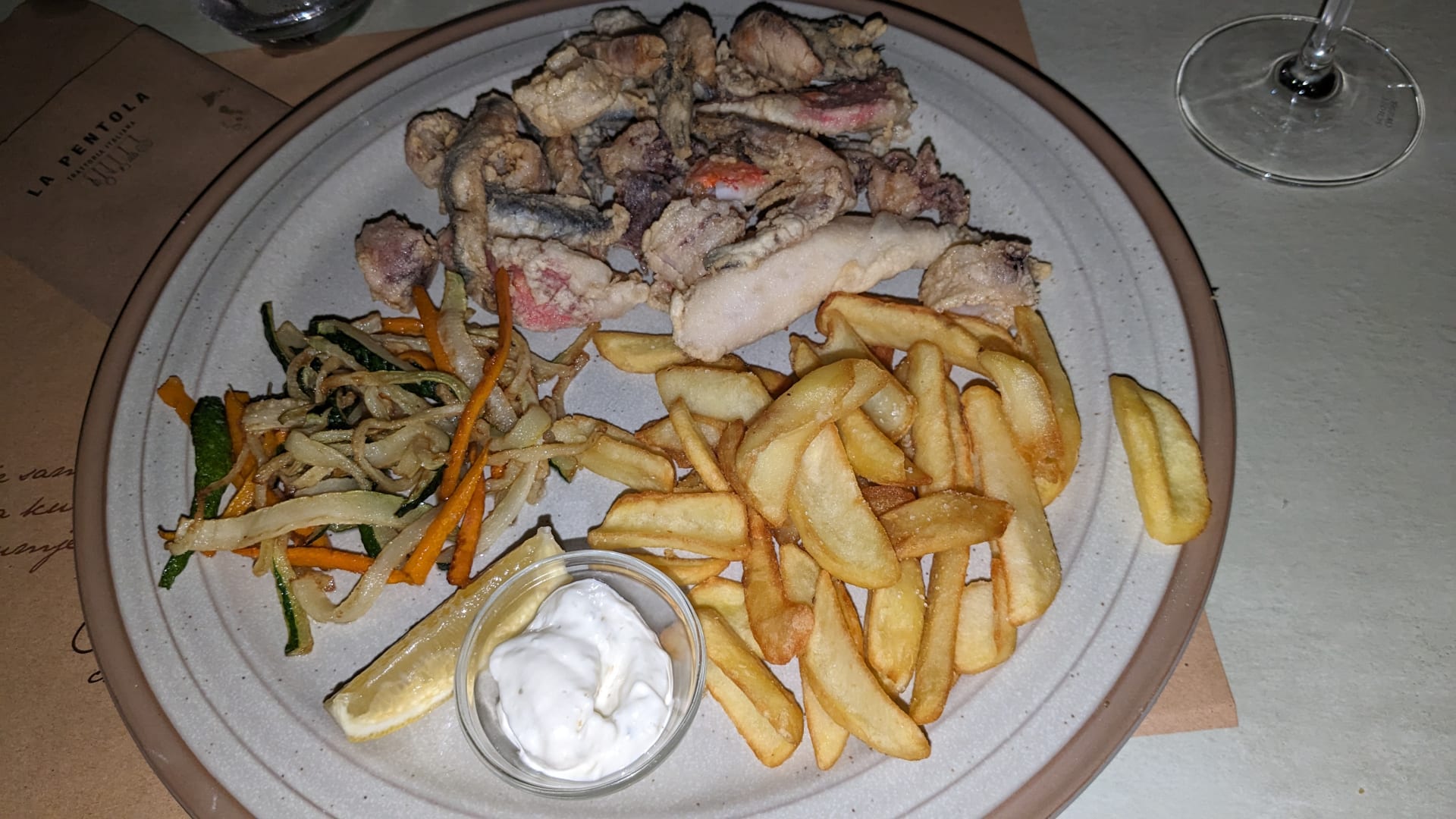 Frittierte Meeresfrüchte im la pentola