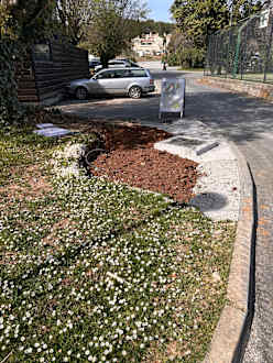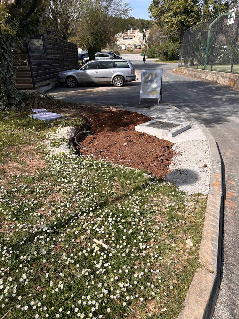 Löcher und Kabel vor dem Hotel