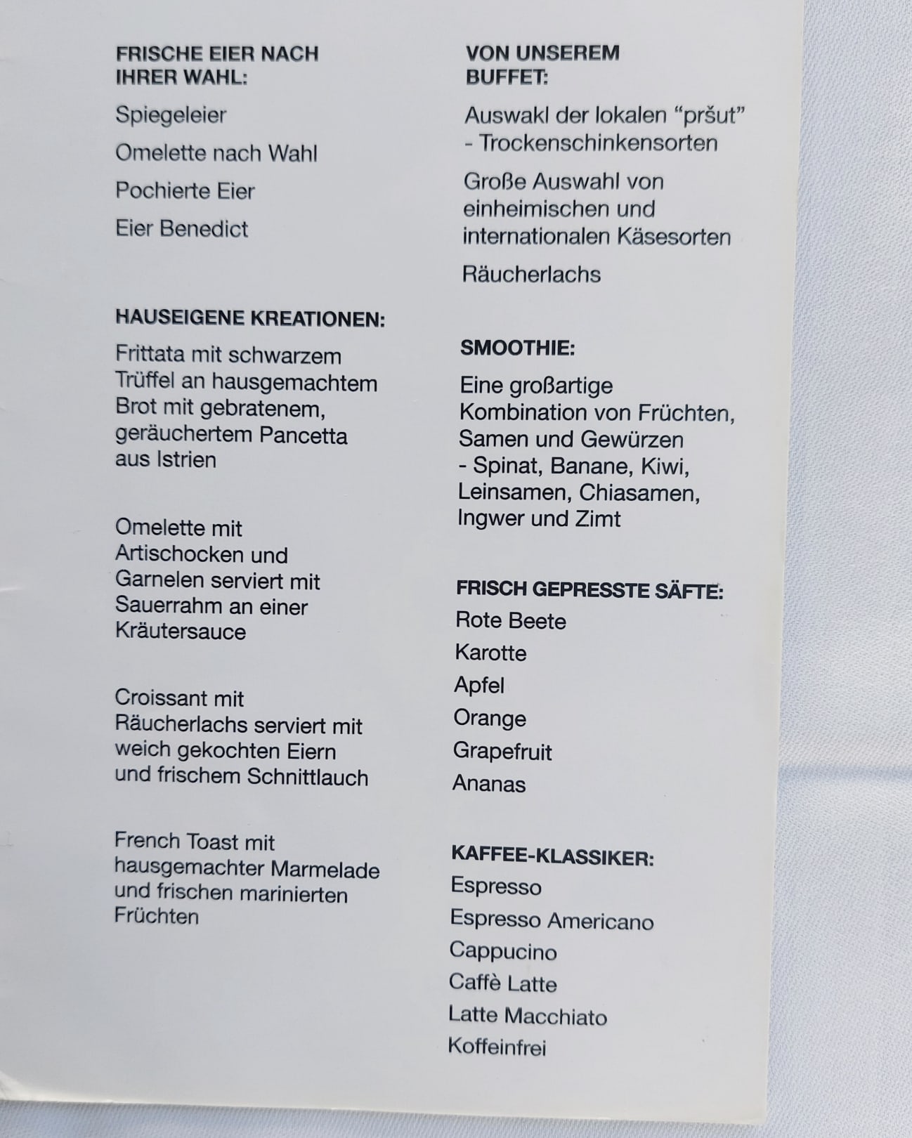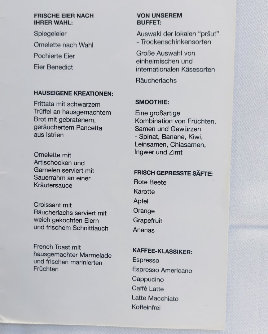 Frühstückskarte im 5* Restaurant