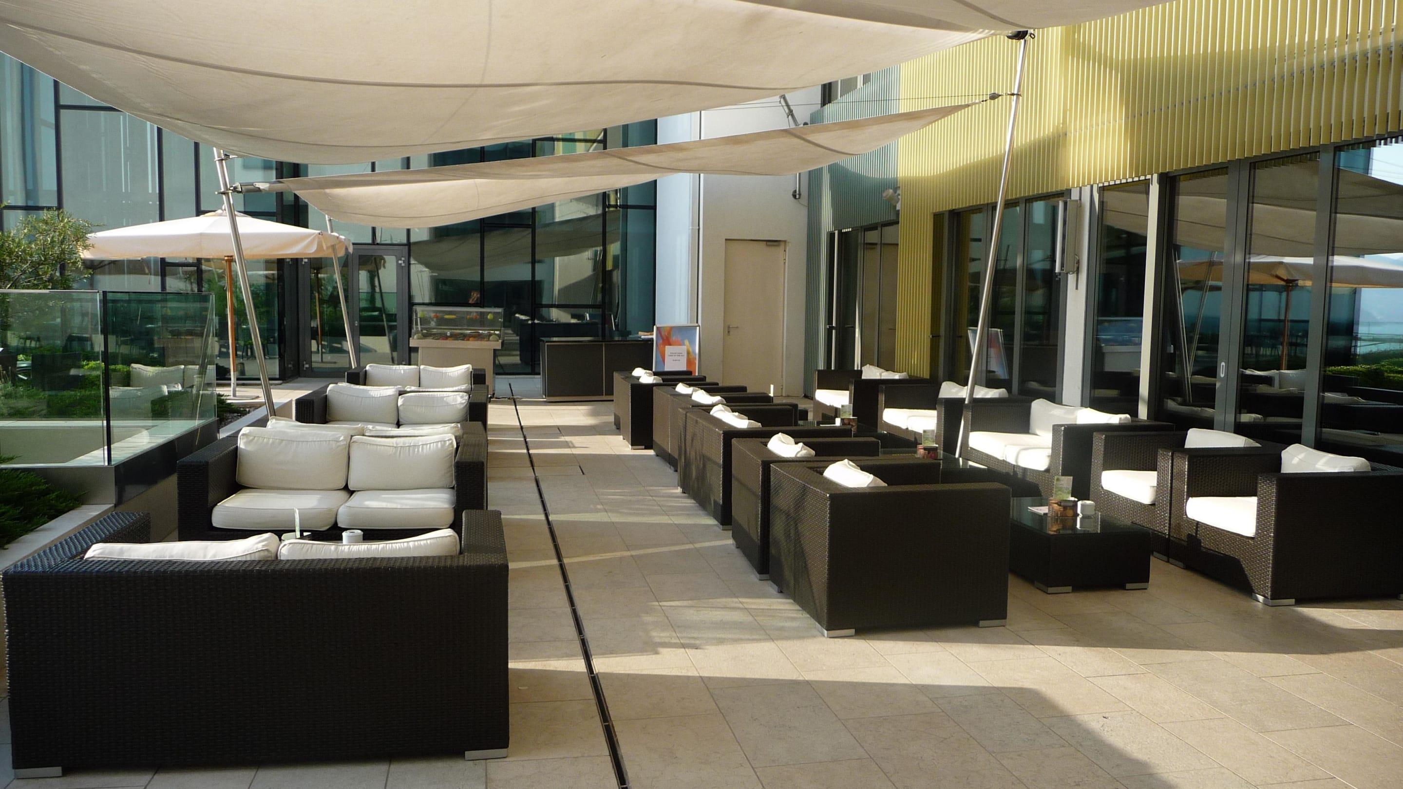 Hotelterrassemit Bar, abends gab es auch musikalische Unterhaltung