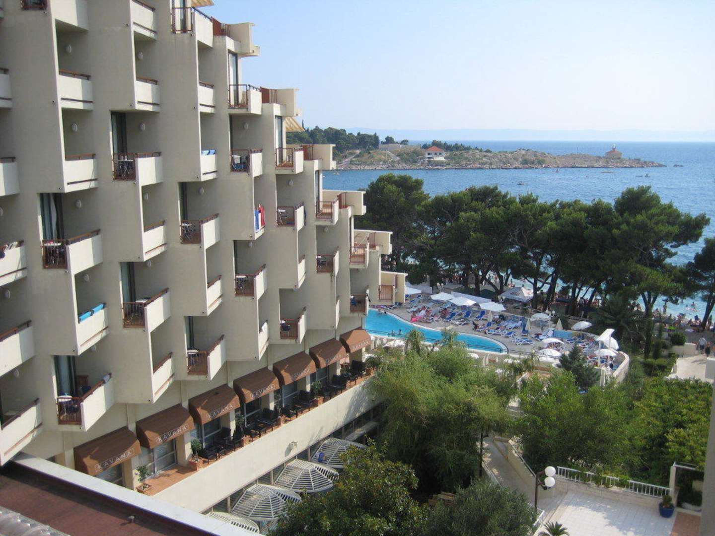 Ausblick vom Balkon im 4. Stock, in Richtung Pool und Strand