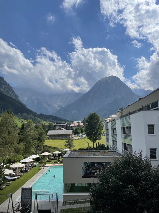Ausblick auf Gartenbereich und Mottakopf