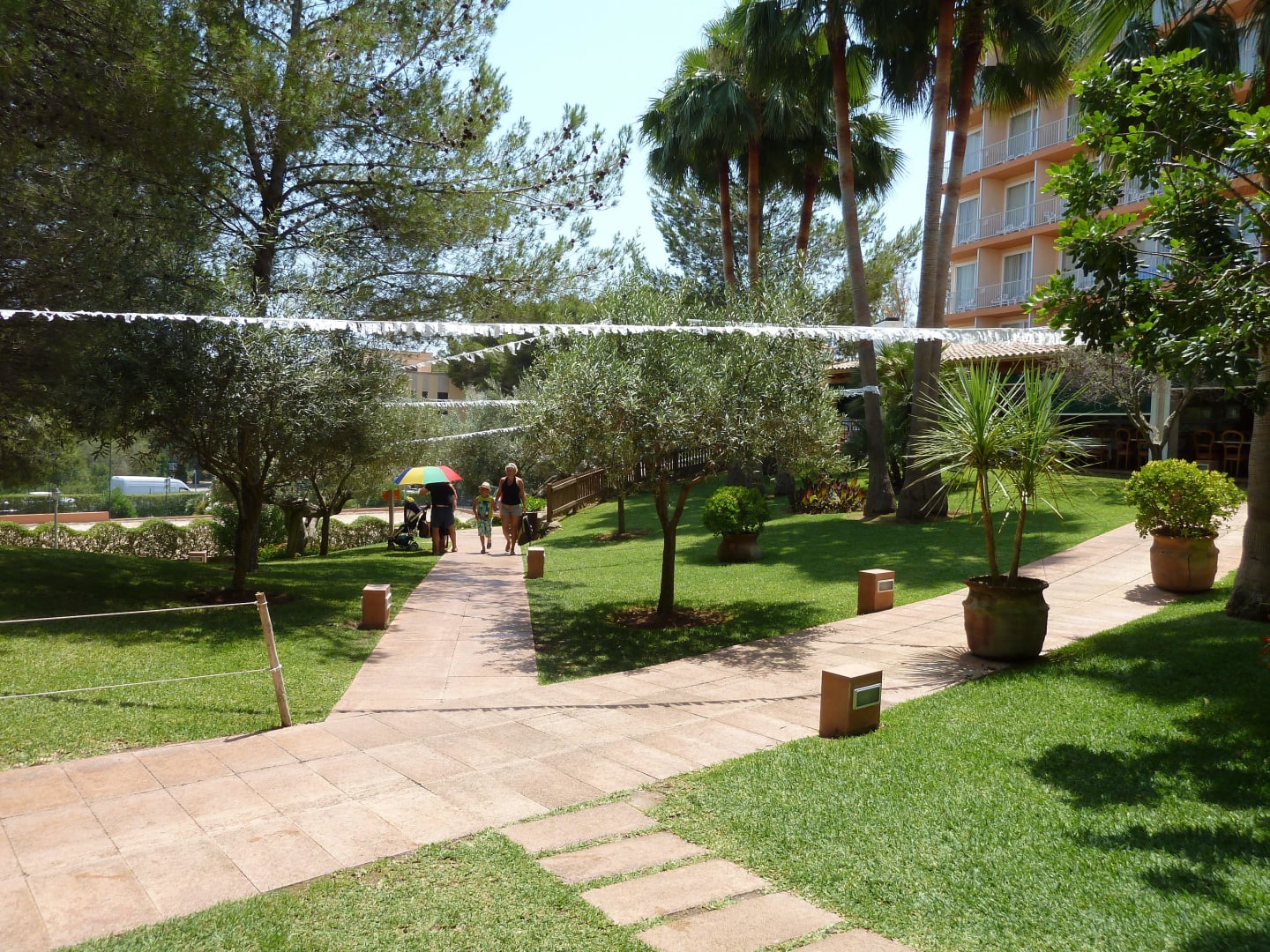 Weg Richtung Hotel und Terrasse des Speisesaalsgeradeaus geht es zu den Zimmern, links zur Terrasse des Speisesaals