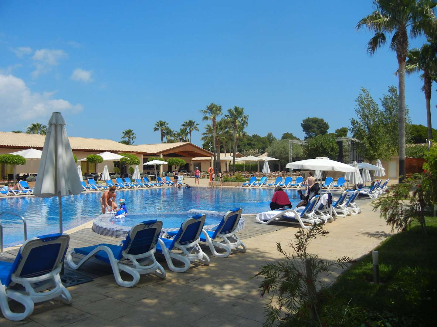 Pool, dahinter Restaurant u. Bar