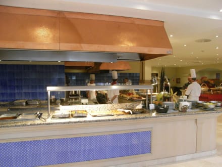 BuffetrestaurantDie Grillstation beim Abendessenbuffet. Hier werden morgens und abends frische Speisen vor den Augen der Gäste zubereitet.