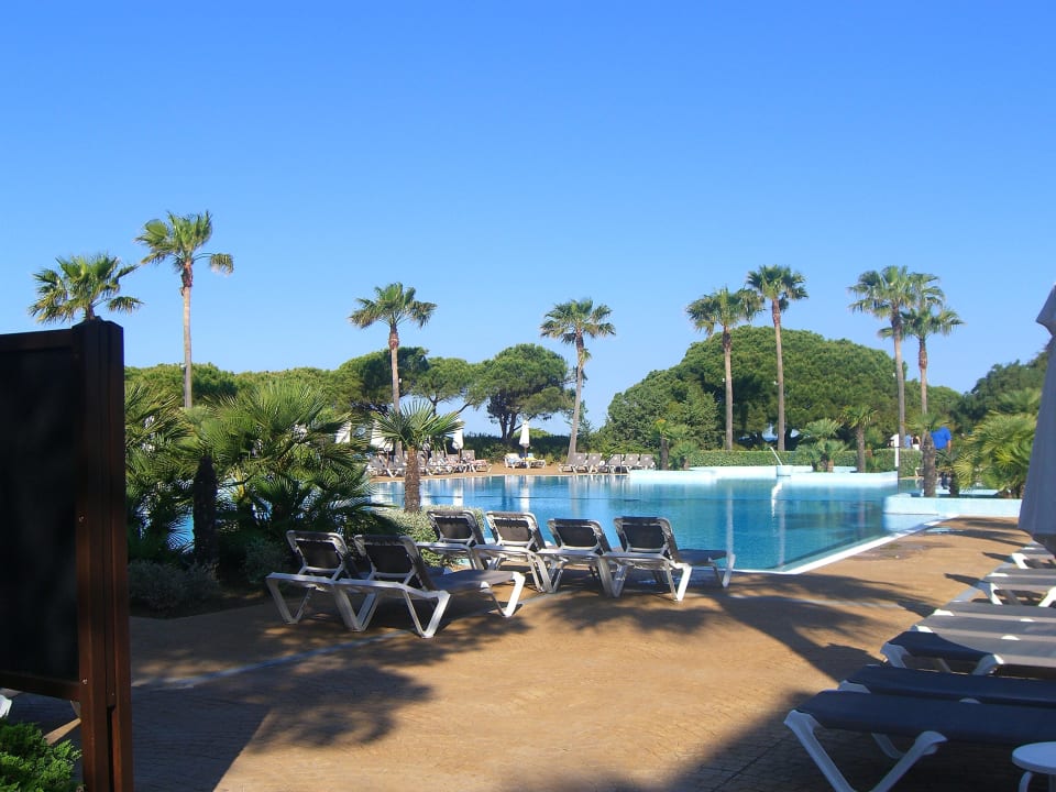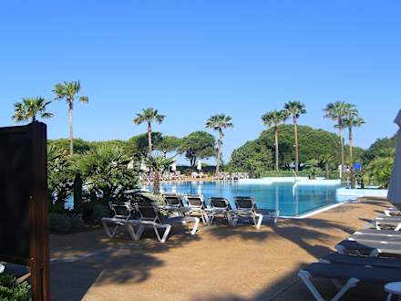 Hinter dem Pool befinden sich der Strand