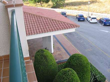 Blick von unserm Balkon im 2. Stock auf das Vordach des Eingans