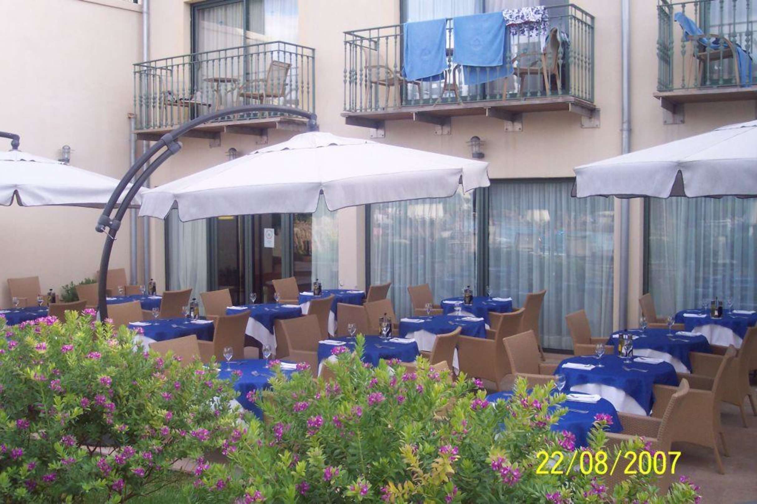 Sicht vom Pool aus zum Eingang ins Restaurant.