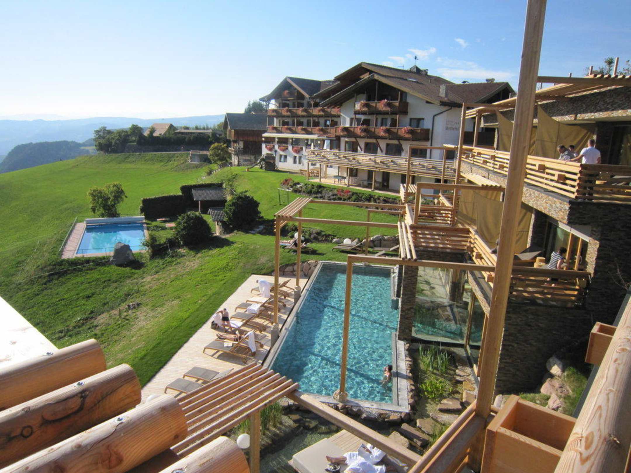 Blick auf das Stammhaus und Aussenpool