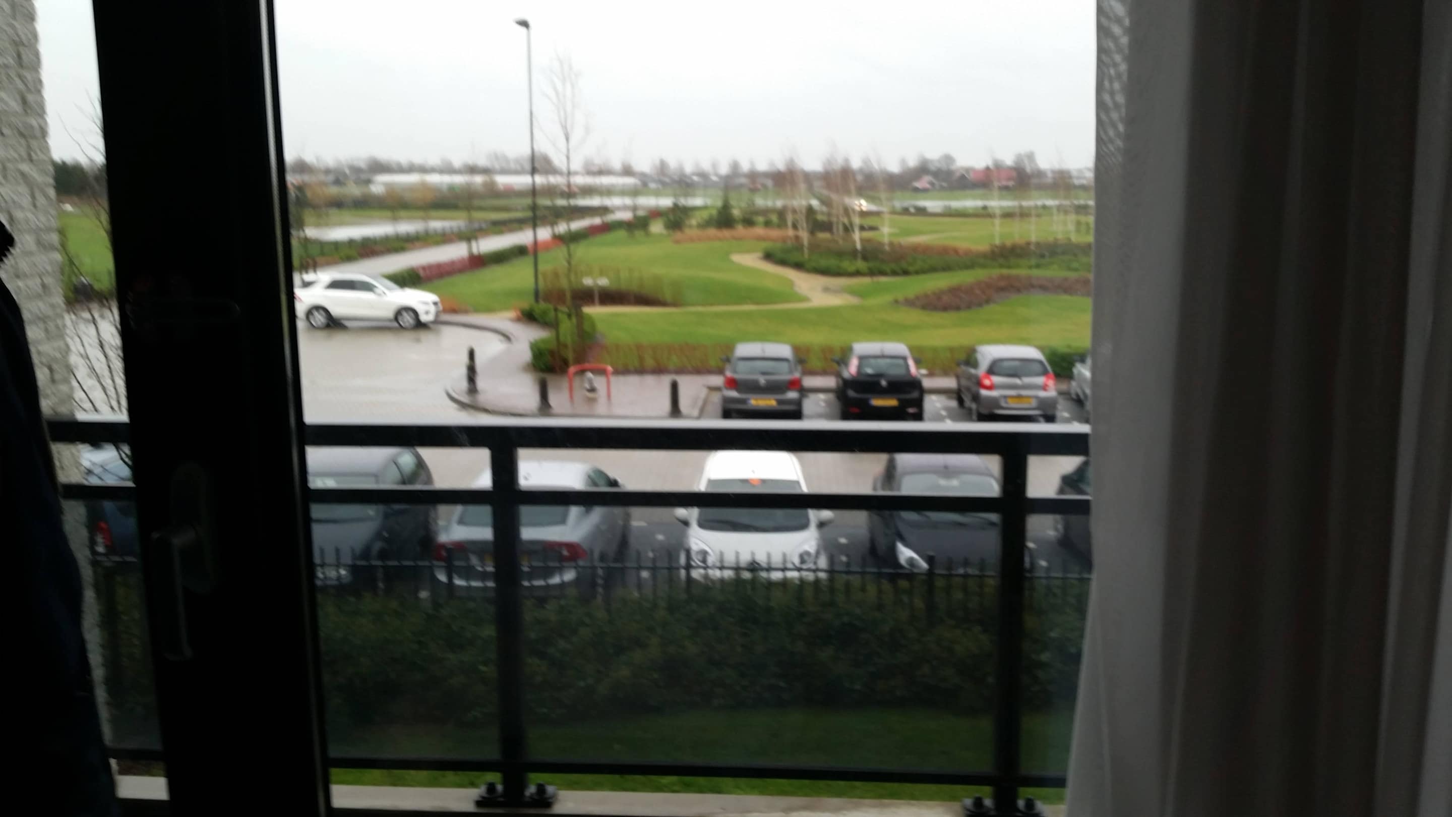 Blick aus dem Fenster (balkon und parkplatz/garten