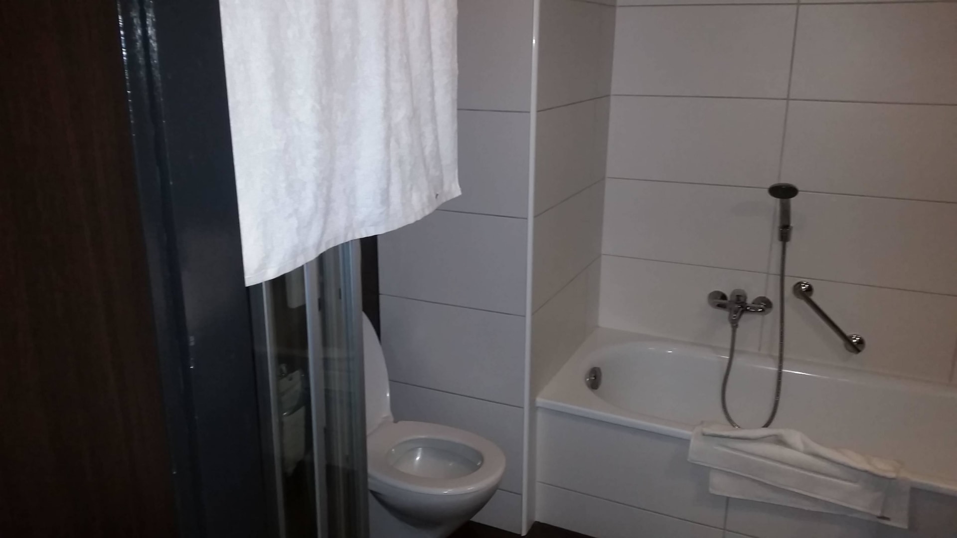 Badezimmer mit Duschkabine und Wanne