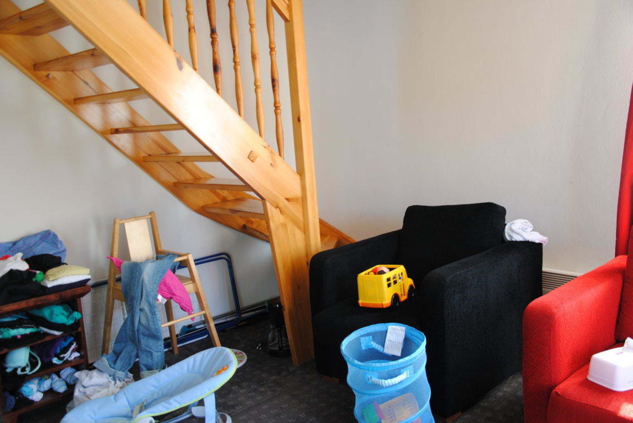 Kindersichere Treppe keine Möglichkeiten Sachen einer 4köpfigen Familie in den Schrank zu legen nur hängen!!!!-deswegen Lagerung in Regalen